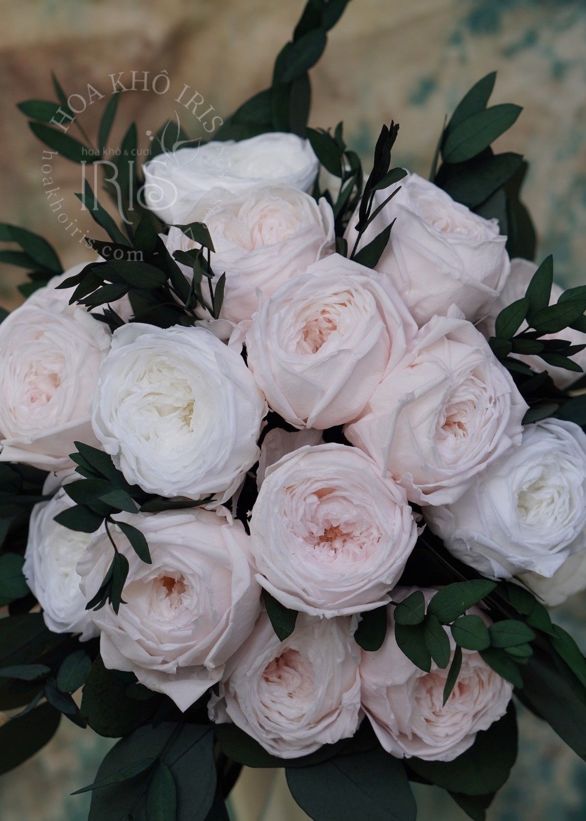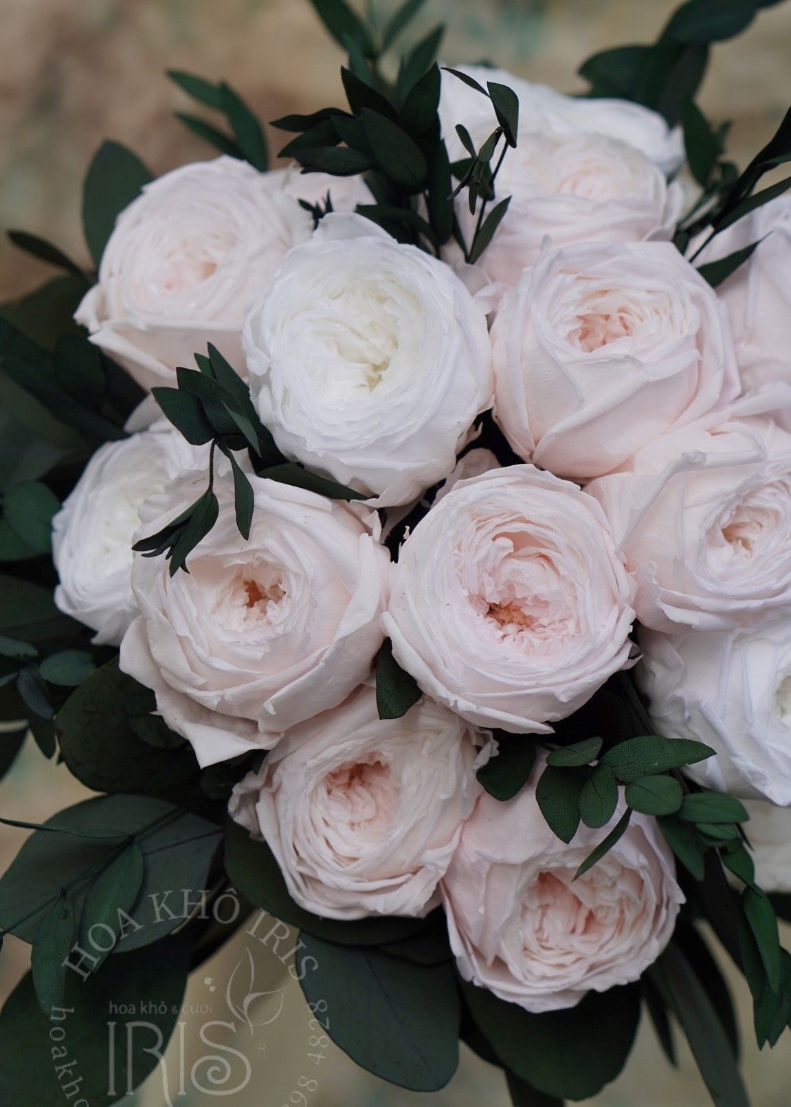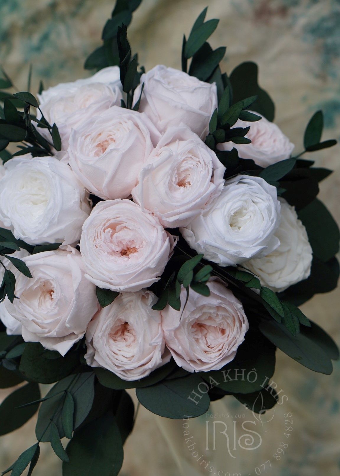 Hoa cưới tông trắng sang trọng được bạn Kem Kabi ( Hot face) tin tưởng lựa chọn tại hoa khô iris