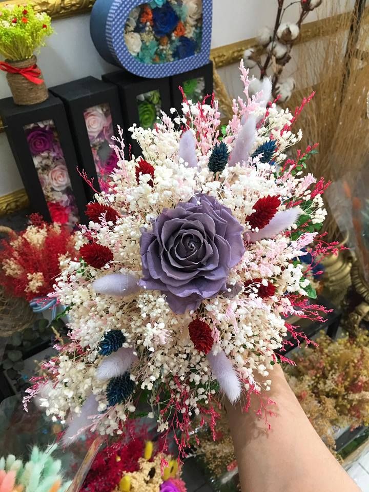 CHẬU HOA BABY ƯỚP ĐIỂM HOA HỒNG TÍM