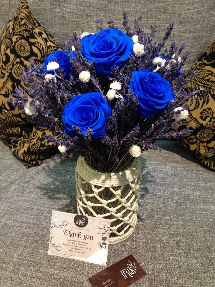 BÌNH HOA HỒNG LAVENDER ĐIỂM HOA HỒNG XANH COBAN