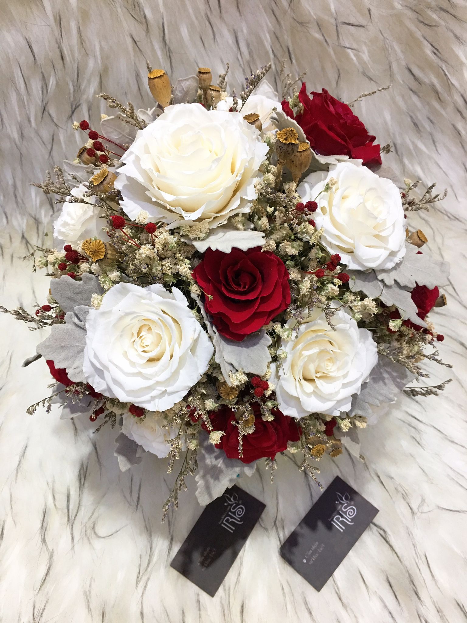 CHẬU HOA HỒNG ĐỎ TRẮNG