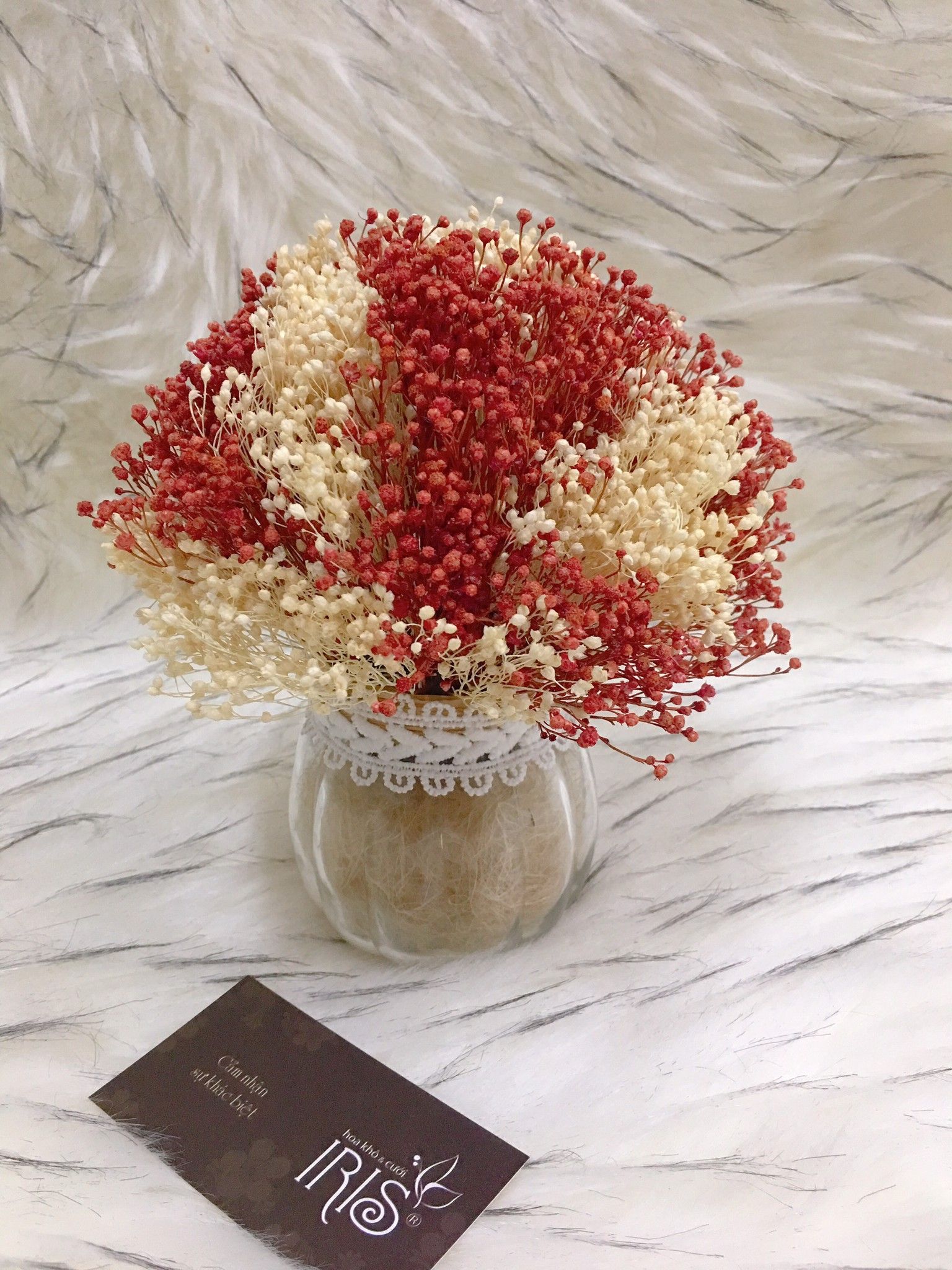 CHẬU HOA BABY GROOM TRẮNG NÂU ĐỎ MINI