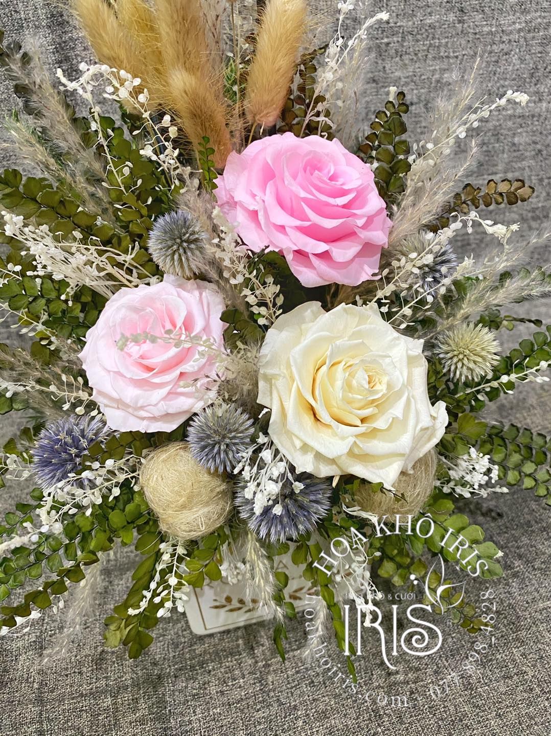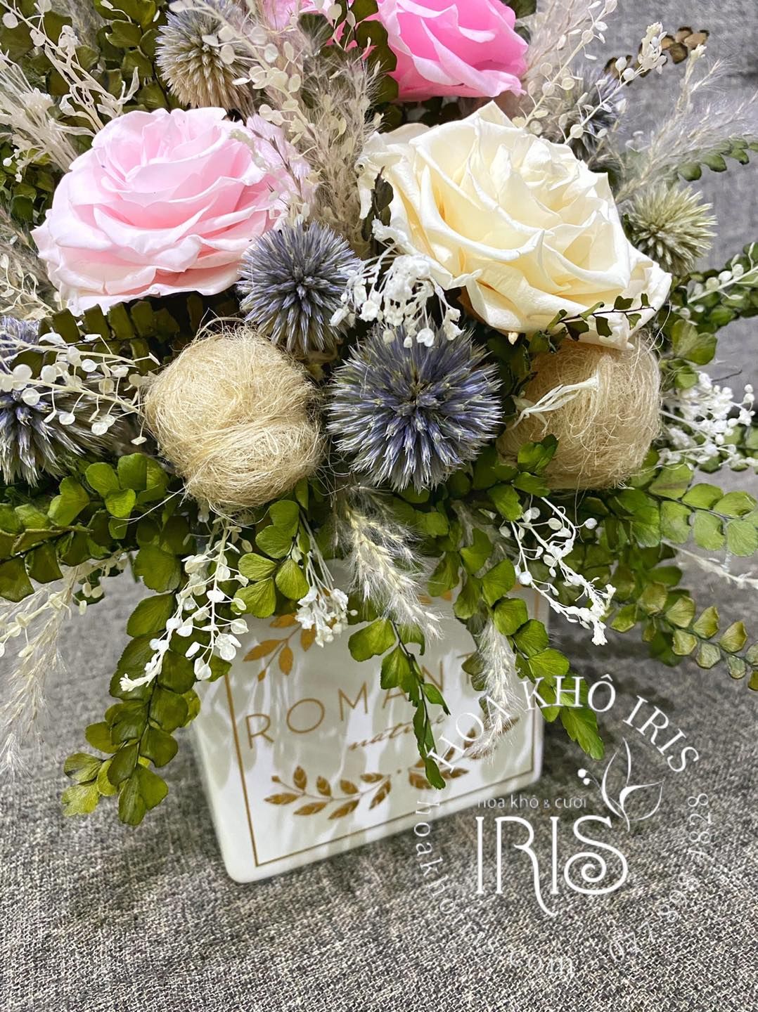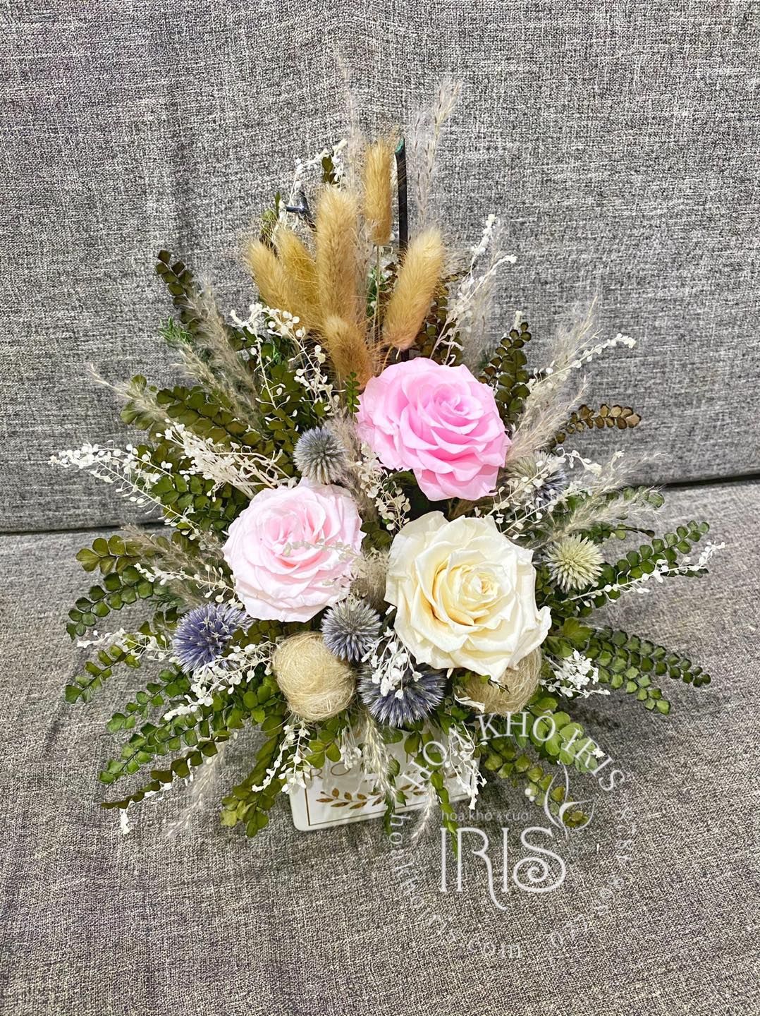 CHẬU HOA HỒNG TRẮNG KẾT HỢP RANDOM