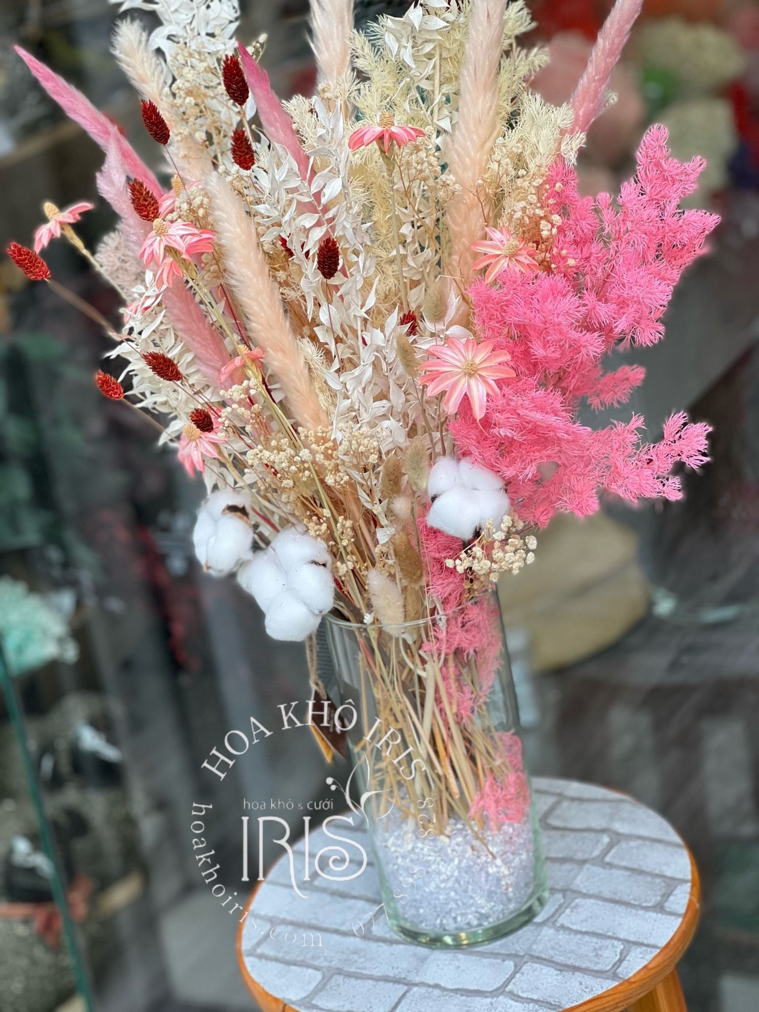có ngọt ngào quá không, chậu hoa trang trí với tông màu hồng nhẹ nhàng xinh xắn.