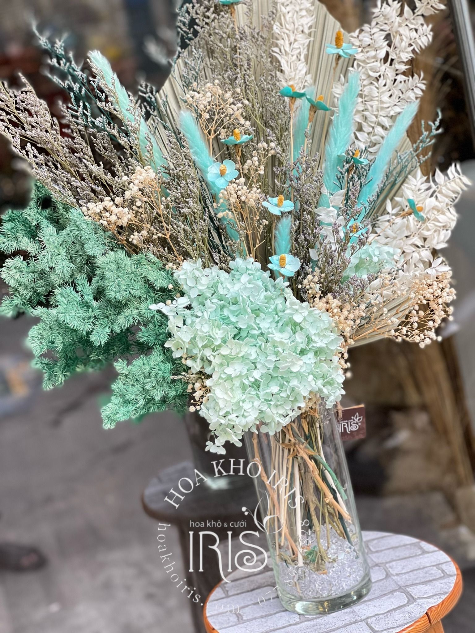 Bình hoa tông màu xanh nhẹ nhàng giúp không gian nhà bạn trở nên dịu dàng và mát mẻ hơn