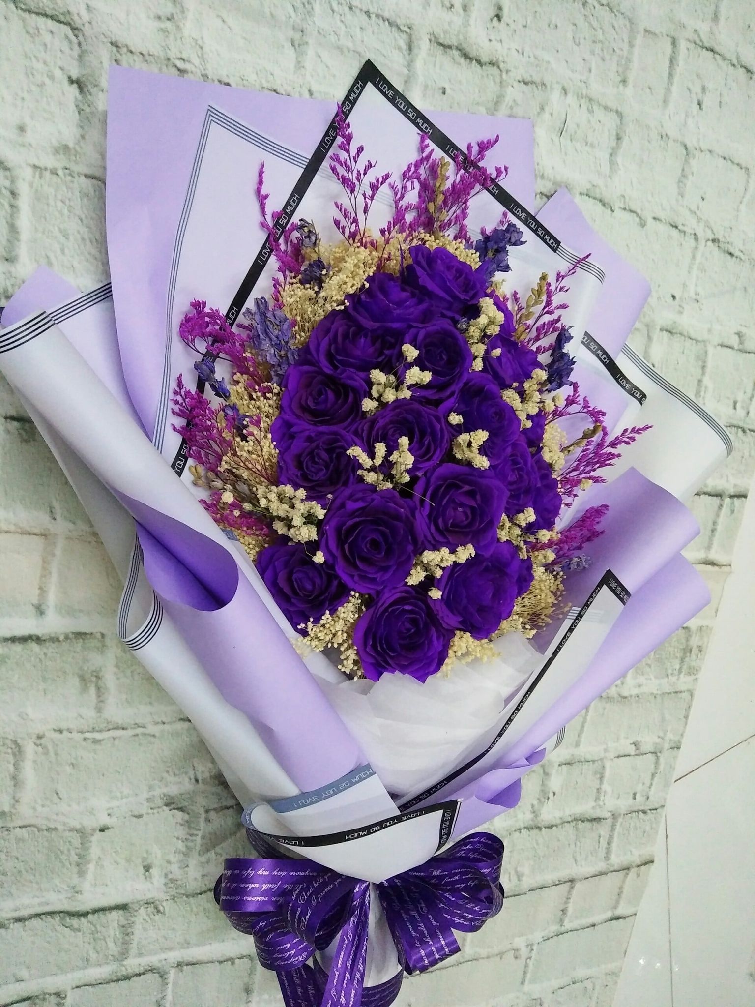 Bó hoa hồng tím tượng trưng cho sự chung thủy thích hợp cho những cô nàng yêu sự lãng mạn và ngọt ngào