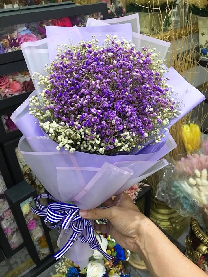BÓ HOA BABY STAR TRẮNG VIỀN TÍM