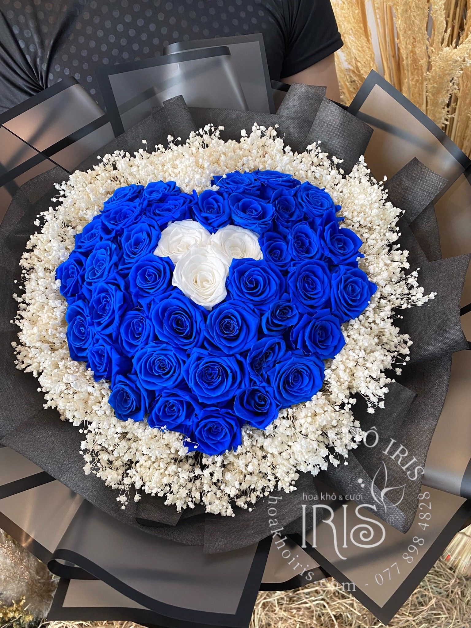 hoa hồng xanh trái tim phủ bibi tuyết trắng nhẹ nhàng