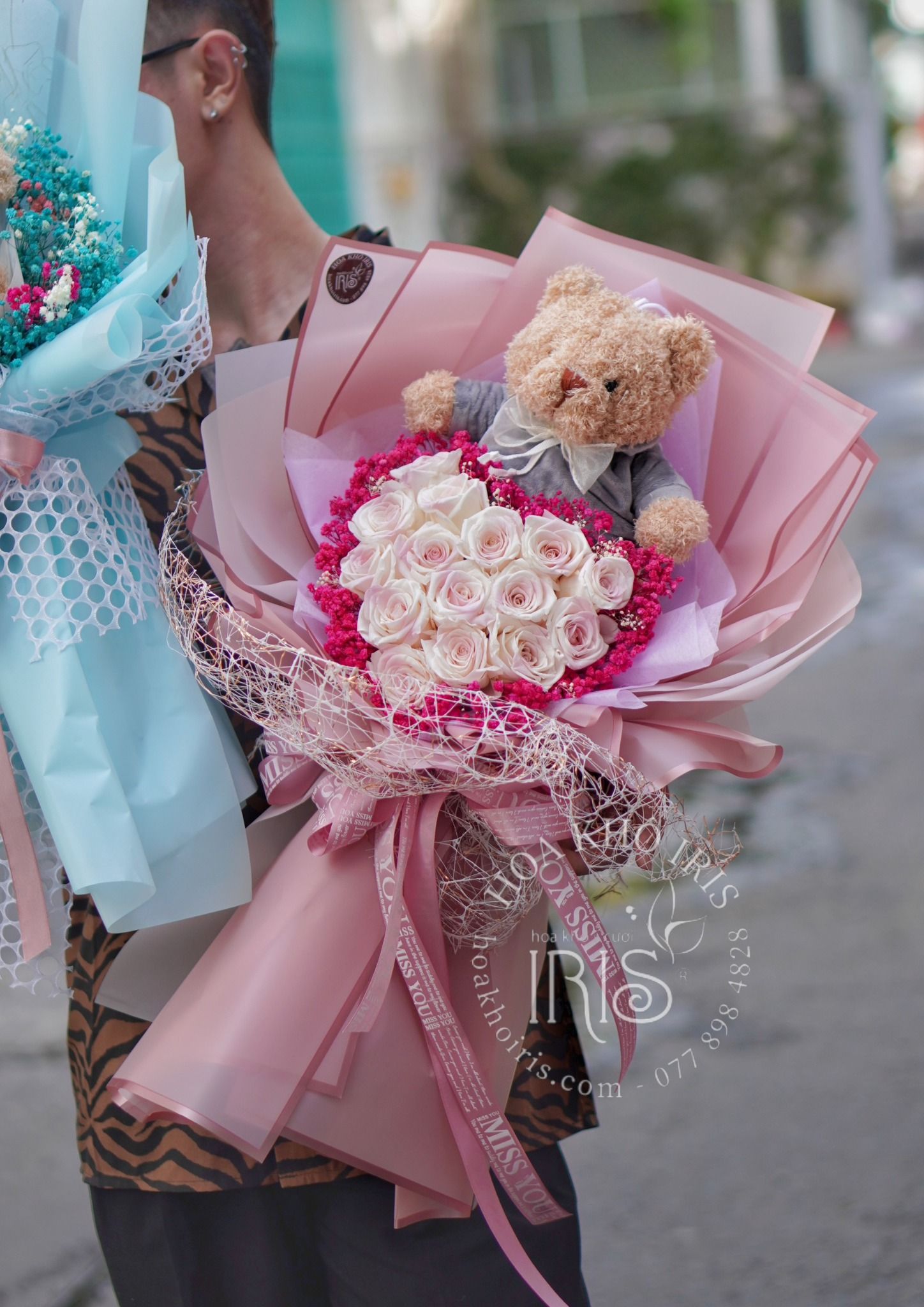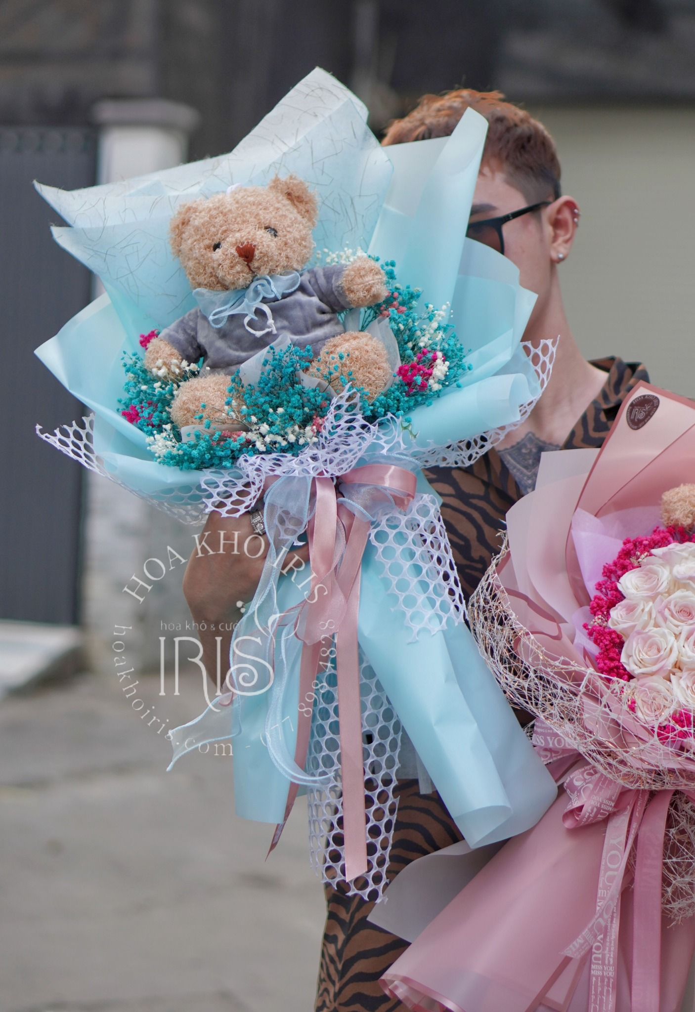 Hoa khô kết hợp cùng Gấu Teddy cực xinh, các chị khó mà từ chối đúng không ạ..