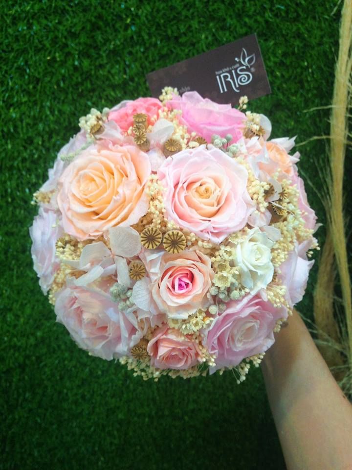 Bộ hoa cưới hồm hoa cầm tay, hoa cài tóc và hoa cài áo.Hoa hồng kết hợp cùng các dòng hoa khô nhẹ nhàng tạo nên bộ hoa cưới tông màu pastel cực yêu,. Cài áo chú rể hoa hồng cùng tông tạo nên cảm giác gắn kết và gần gủi.. màu sắc cá tính. Xinh lắm các nàng dâu, chàng rễ nhé!