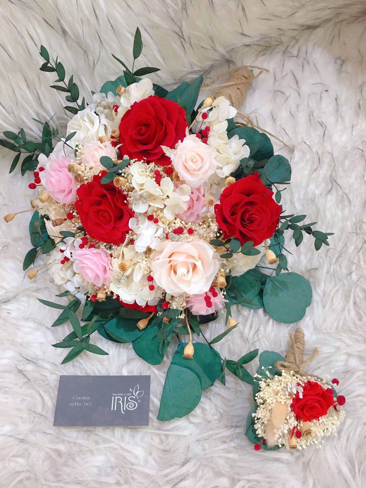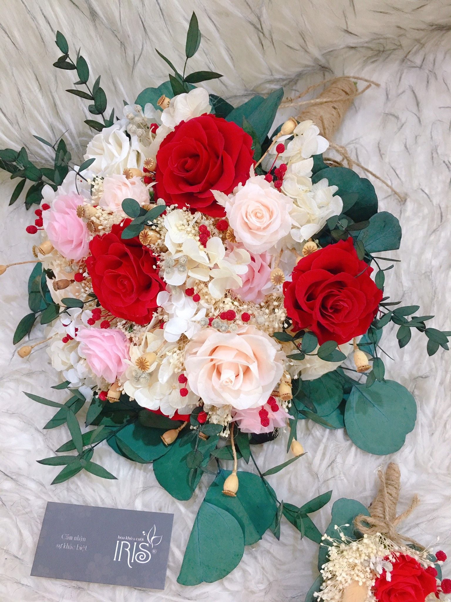 BÓ HOA CƯỚI BOHO TONE ĐỎ TRẮNG HỒNG