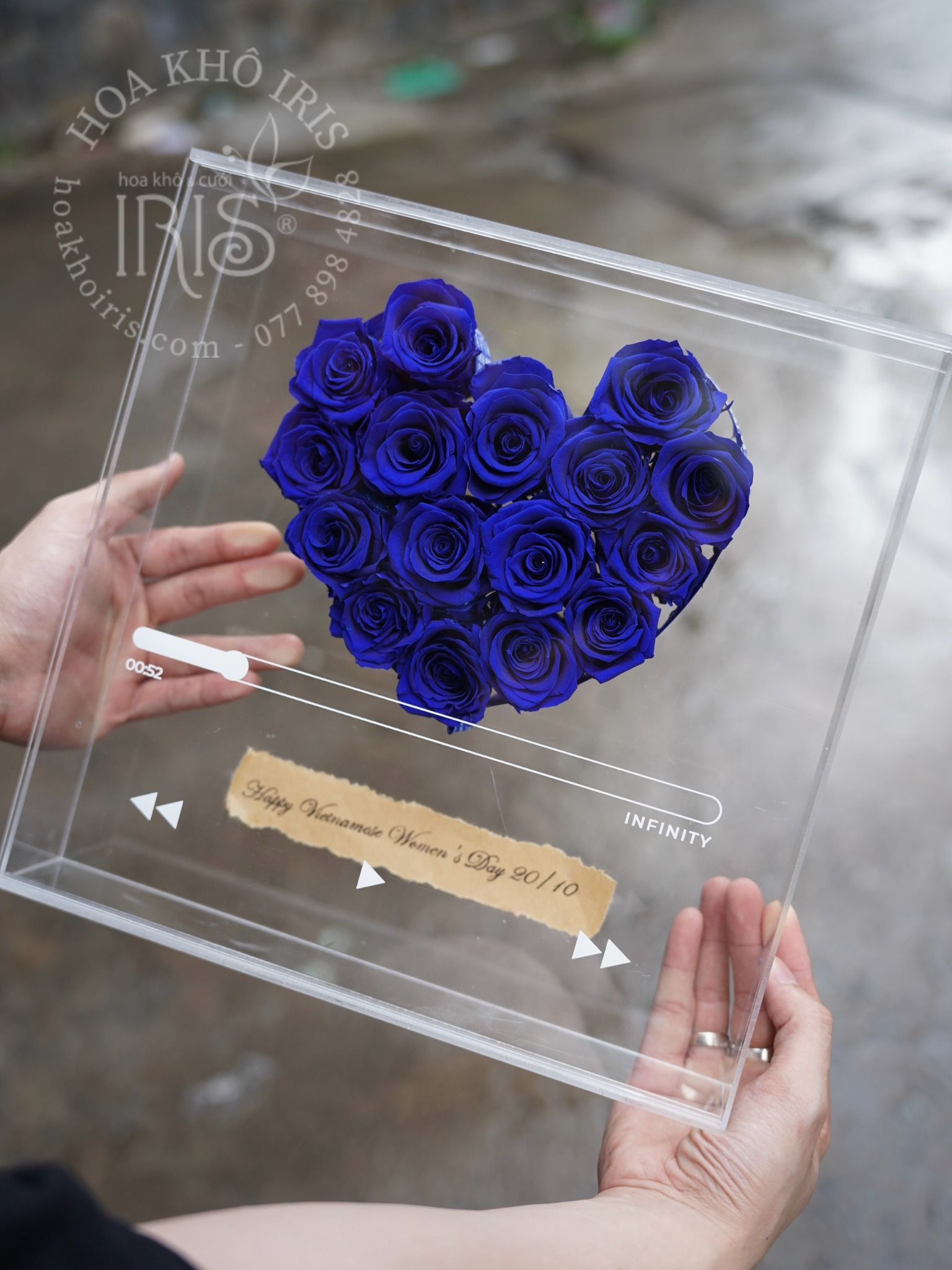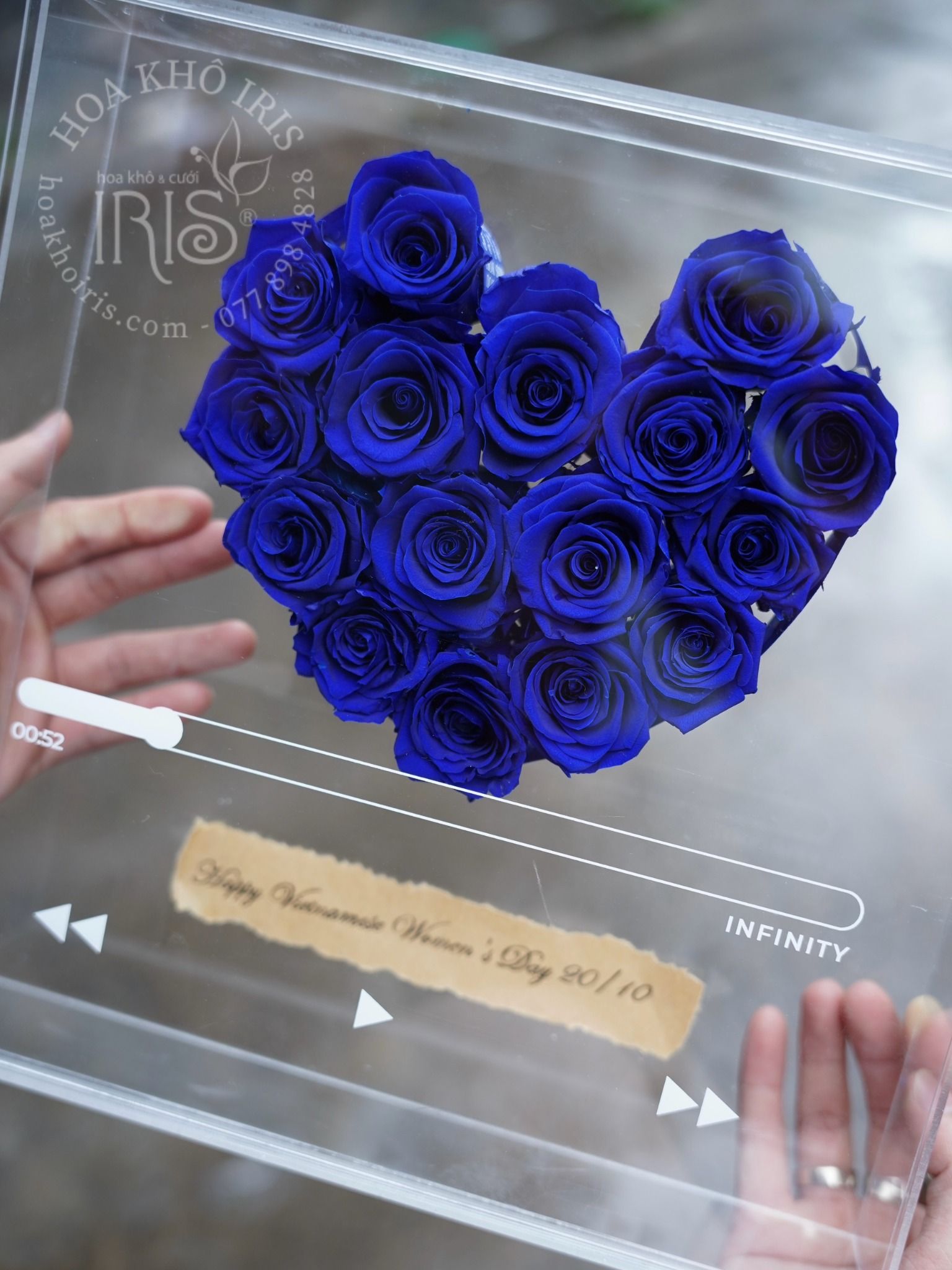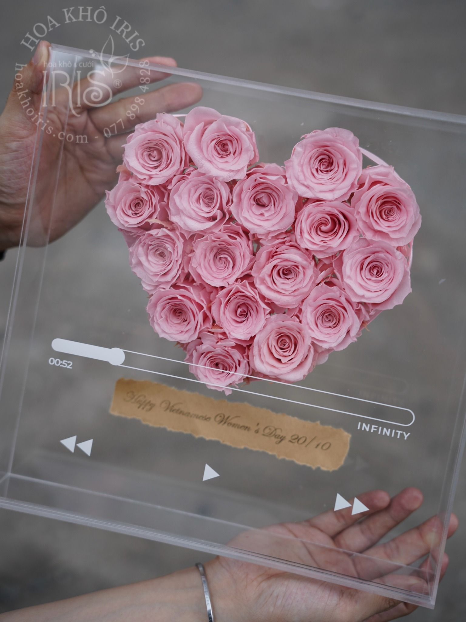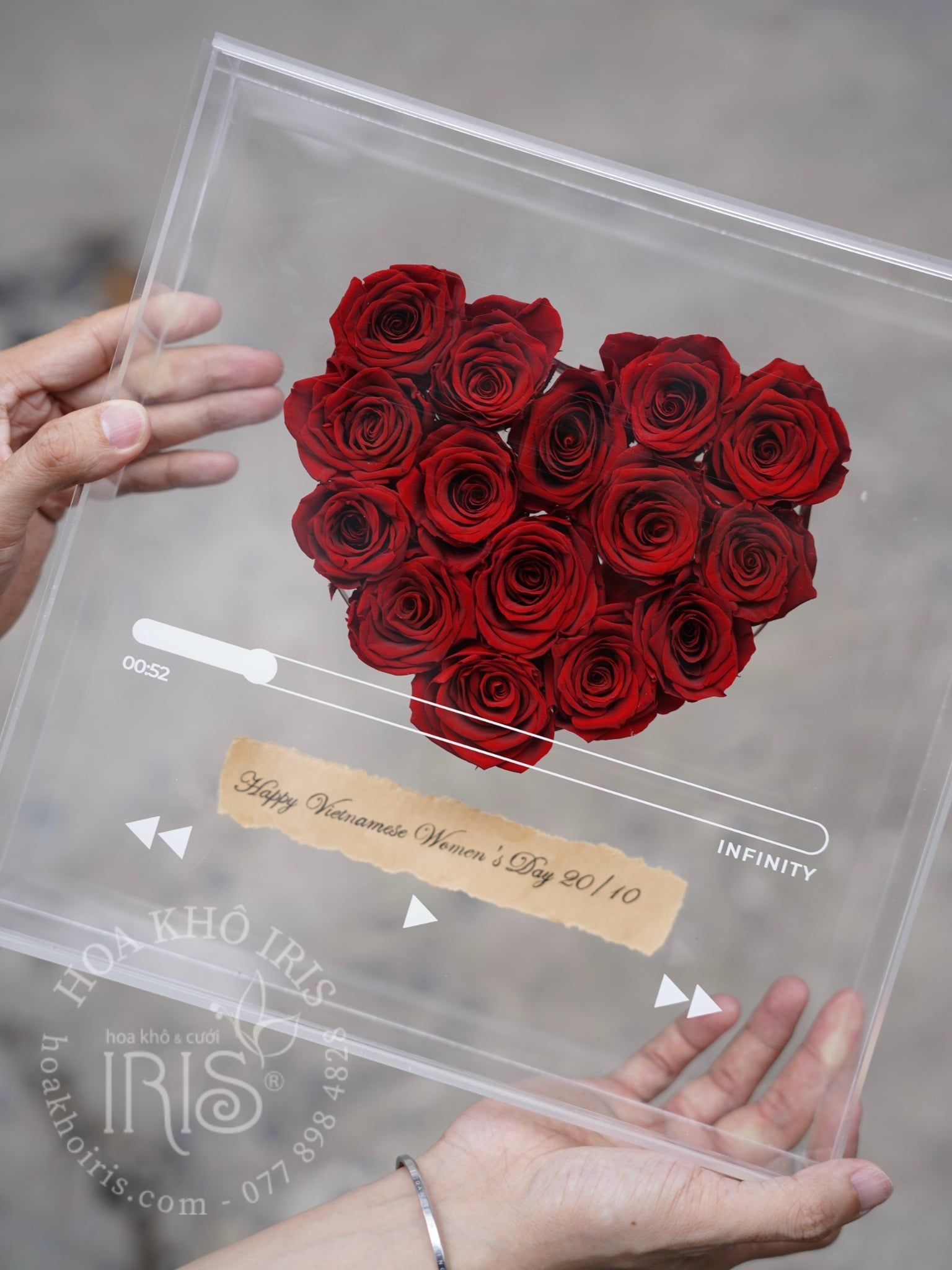 Hộp hoa với hình ảnh một bài hát đang phát lên giai điệu là chính thông điệp mà bạn muốn gửi gắm đến người thân yêu, rất hay và ý nghĩa đúng không ạ
