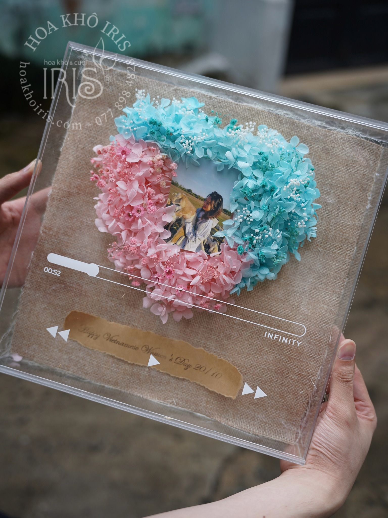 Hộp hoa với hình ảnh một bài hát đang phát lên giai điệu là chính thông điệp mà bạn muốn gửi gắm đến người thân yêu, rất hay và ý nghĩa đúng không ạ