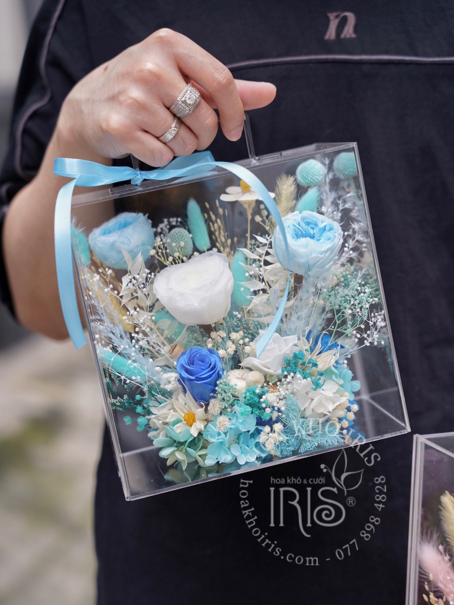 Hoa hồng vĩnh cữu kết hợp cùng những loại hoa mini xinh sẵn trong hộp gỗ cực kì sang trọng. Hộp đựng quà tặng cực kì ấn tượng cho những ngày quan trọng của chúng ta. Kích t...